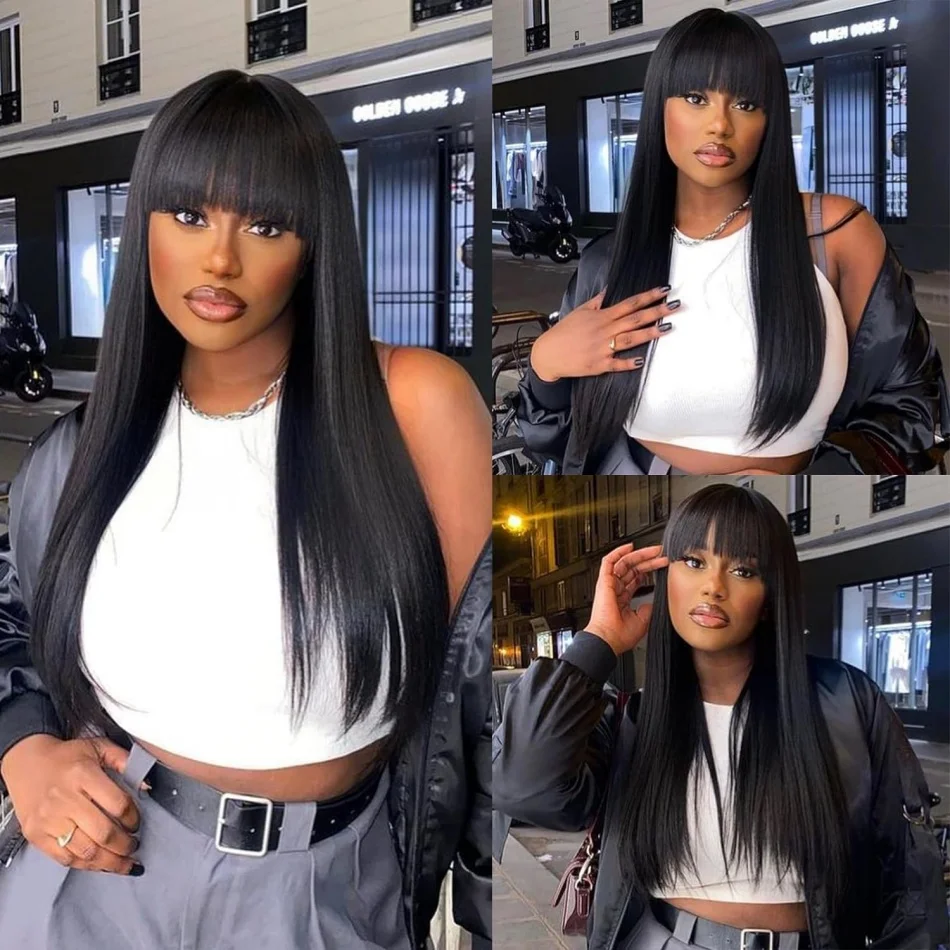 3X1 Middle Part Lace Wig Bone Straight Human Hair Wigs With Bangs Brazilian Full Machine Made 100% Human Hair Wigs For Women