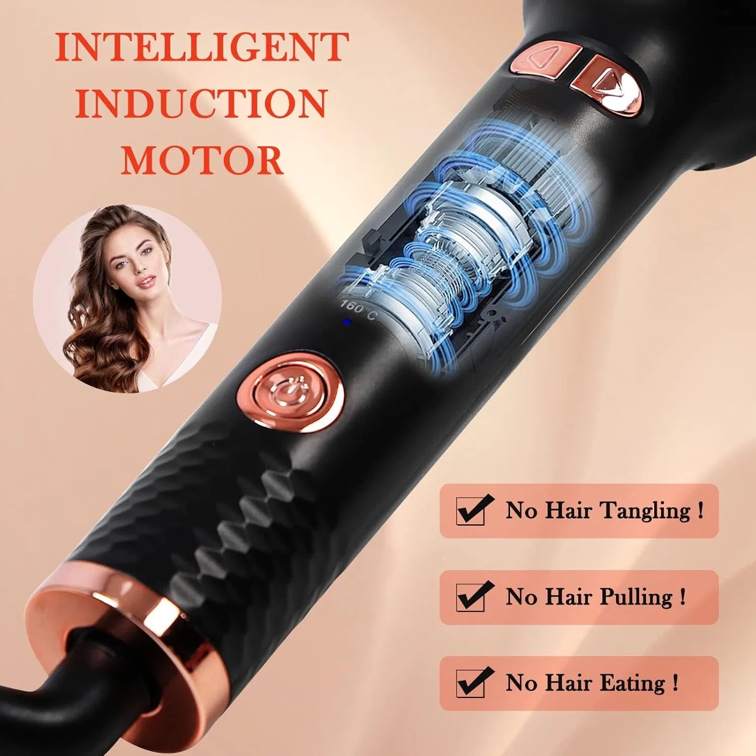 Automatic Curling Iron, Ceramic Ionic Auto-Rotating Hair Curling Wand With Anti-Stuck Technology - Black