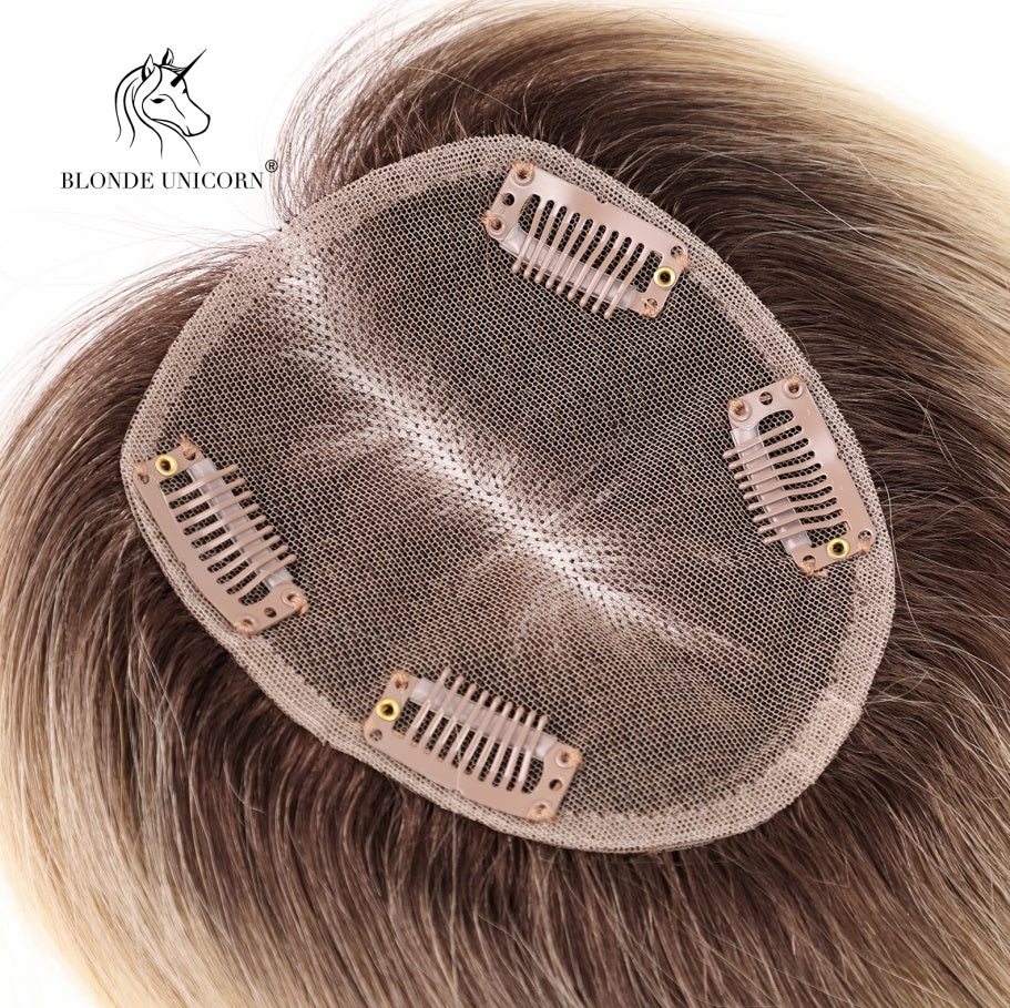 <p><strong>Blonde Unicorn Hand Tied Human Hair Topper</strong> is a popular hair accessory. It is made of real human hair, which provides a natural look and texture, allowing it to blend well with one's own hair. The hand tied construction means the hair is carefully knotted onto a base, ensuring a more secure and comfortable fit. It is designed to add volume, length, or cover thinning areas on the top of the head, giving an instant boost to one's hairstyle. Ideal for those seeking a convenient and natural-looking solution to enhance their hair's appearance.</p><ul><li><strong>Hair Fiber: </strong>100% Remy Human Hair</li><li><strong>Craft: </strong>Hand Tied</li><li><strong>Base Dimension</strong>: 4“× 5“</li><li><strong>Length: </strong>14“</li><li><strong>Weight:</strong> 50g</li><li><strong>Color: </strong>Rooted Bleach Blonde </li></ul><h3 style="text-align: left;">Our promise:</h3><ul><li><strong>Highest Quality Cuticle Remy Human Hair</strong>: Our products are exclusively crafted from 100% Remy human hair. We maintain the most stringent quality control standards, guaranteeing the unwavering consistency and superior quality of every pack of cuticle Remy human hair.</li><li><strong>Privacy and Security</strong>: All customer order details are safeguarded with utmost care. We firmly pledge that customer privacy information will never be sold or divulged to any third party.</li><li><strong>Shipping and Delivery</strong>: All orders are dispatched within 48 hours, and tracking information can be accessed online. Customized products, however, require production time and will be shipped within 20 days.</li><li><strong>Excellent Customer Service</strong>: We provide a 30-day no-questions-asked refund policy. If you are not entirely satisfied with our product, simply contact us via Email or WhatsApp, and we will expeditiously address your concern.</li></ul>