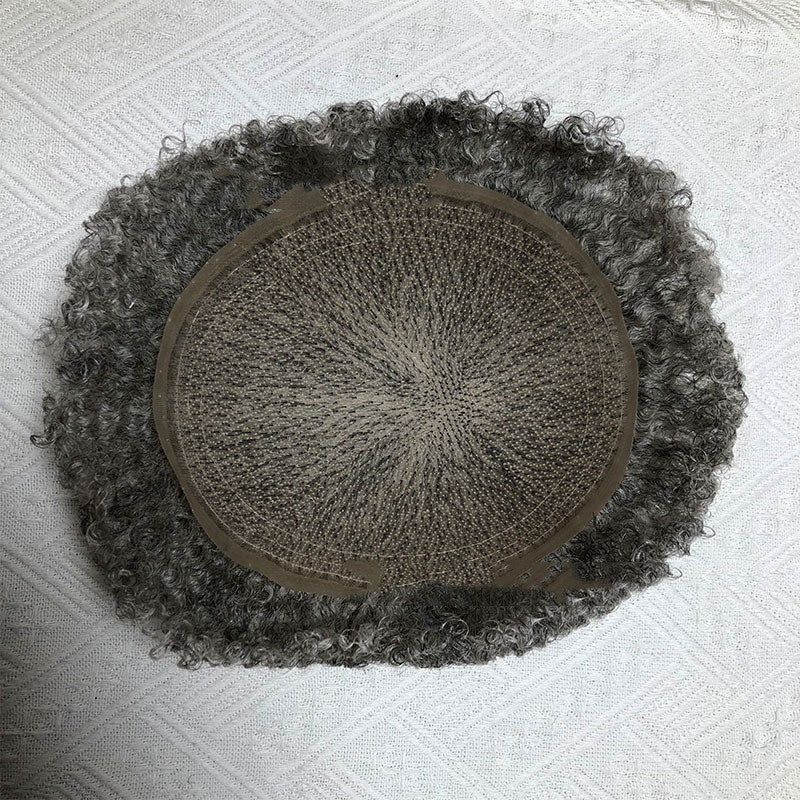 Real Human Hair Replacement Supplies Toupee 1 B50 Toothpick Curved Men's Biological Scalp