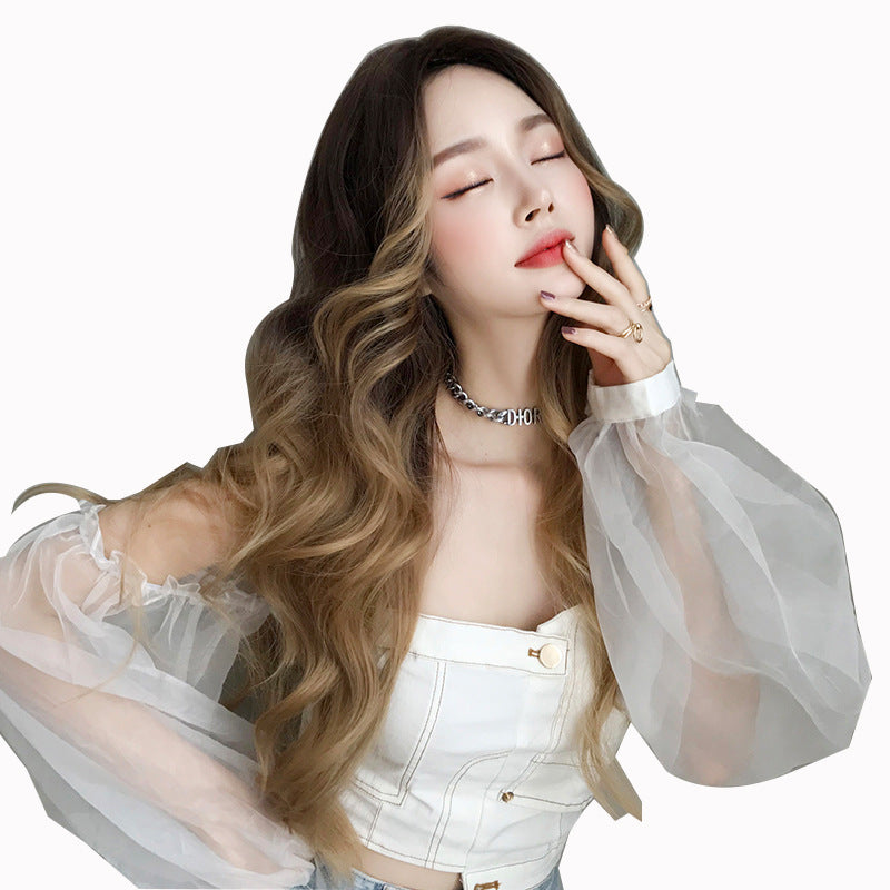 Women's Long Hair Full-head Wig Natural Big Wave Golden Hand-rolled Wig